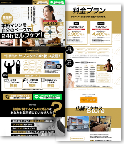 潜在層に向けたアプローチとして、「悩み」「理想の姿」「(スタジオの)実際の風景」「地元(高知)」「権威性(国家資格)」などを最初の画面に集めました。